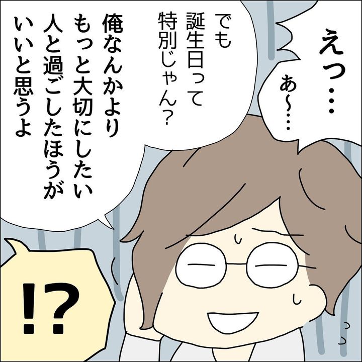 ゆりゆさんの誕生日が間近だと分かり、男性は「何かするの?友達と旅行とか」と聞いてきたそう。特に予定のなかったゆりゆさんは「もし予定が合えば一緒にご飯行けたら嬉しいな!」と言ったところ、男性から「俺なんかよりもっと大切にしたい人と過ごしたほうがいいと思うよ」と素っ気ない言葉が返ってきた!