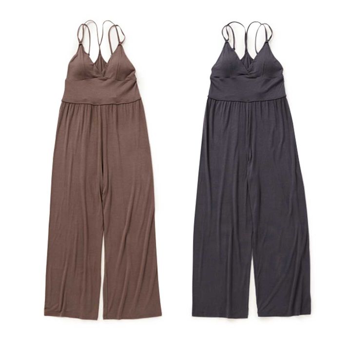 パッドが入っていて、一枚でサラッと着られるサロペット。その名の通り、ストレスフリーでリラックスできる最高の着心地。ご近所など、外出にも着て行ける洗練されたデザインが魅力です。