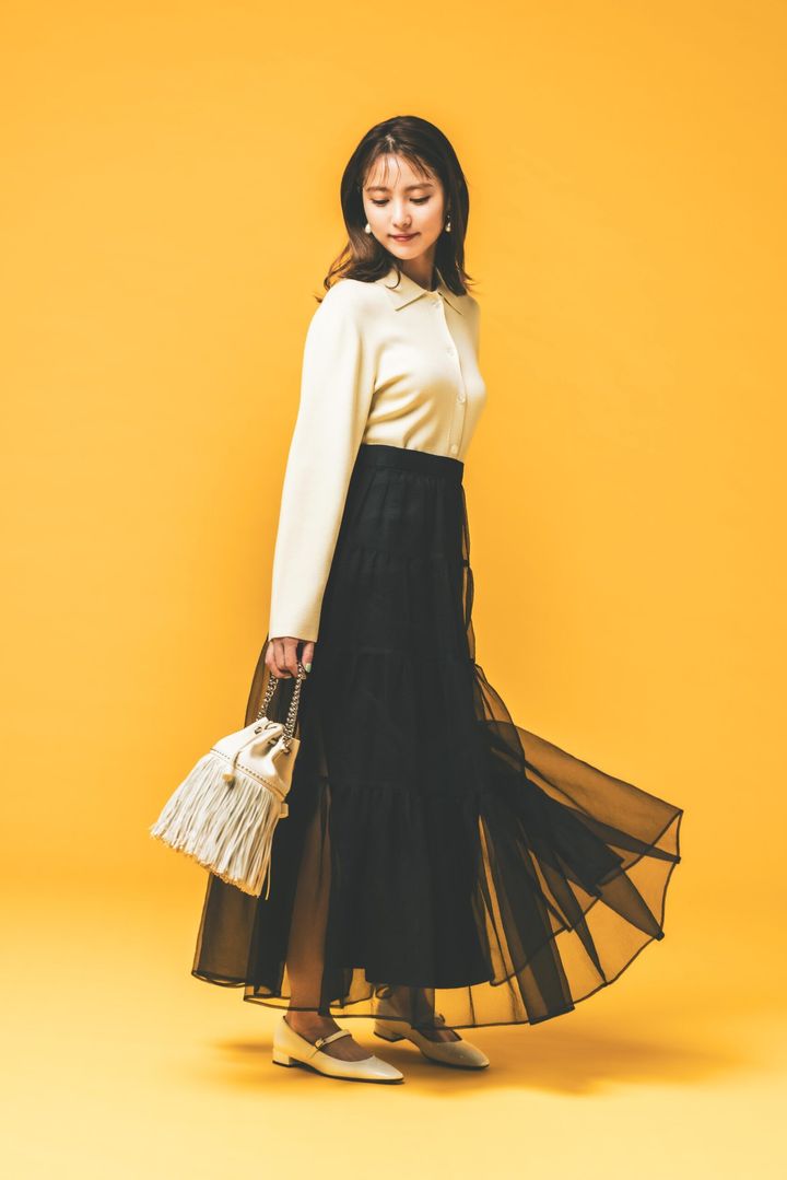 大人の甘さ香る「オーガンジースカート&チュールスカート」コーデ
