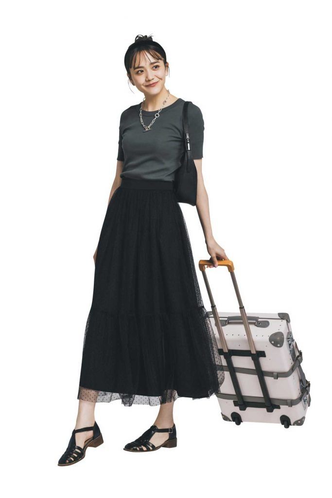 黒スカートを新調するなら、今季はオーガンジーやチュールなどのドラマティックなデザインがおすすめ! ラフなロゴTと合わせたり、とことんレディなムードを満喫したり…。今回は、黒の「オーガンジー&チュールスカート」を使った大人の夏コーデをご紹介します。