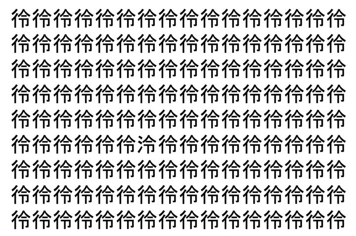 画像の中には、「彾」という漢字が縦に9行、横に16個並んでいます。 全部で144個となりますが・・・、そのうち1つは「異なる漢字」となってますよ!!