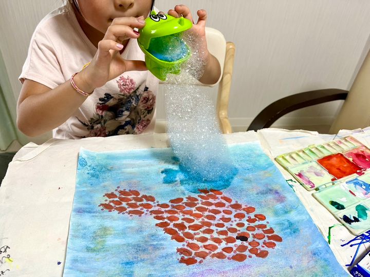 手軽にバブルアートが楽しめたり、カラフルな泡でおままごとをして遊んだりと、お家時間が楽しく過ごせますよ!