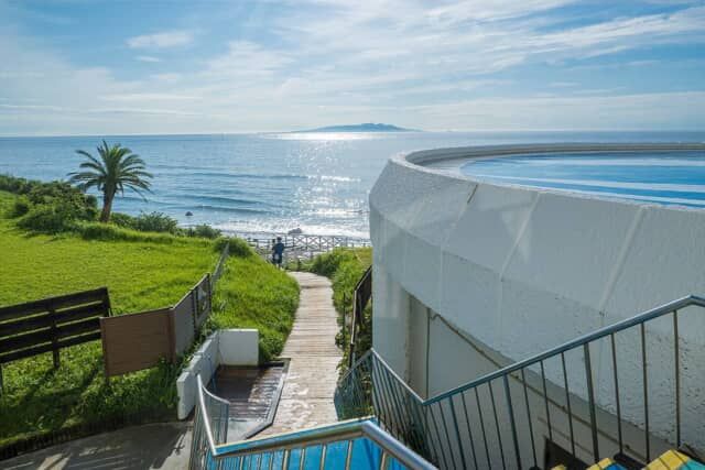 目の前に広がる南伊豆の海!全室オーシャンフロントの【下田プリンスホテル】は、日本を代表する建築家黒川紀章が設計し、1973年にオープン。目の前には白い浜辺と太平洋が広がり、背後は森に囲まれたリゾートホテルです。