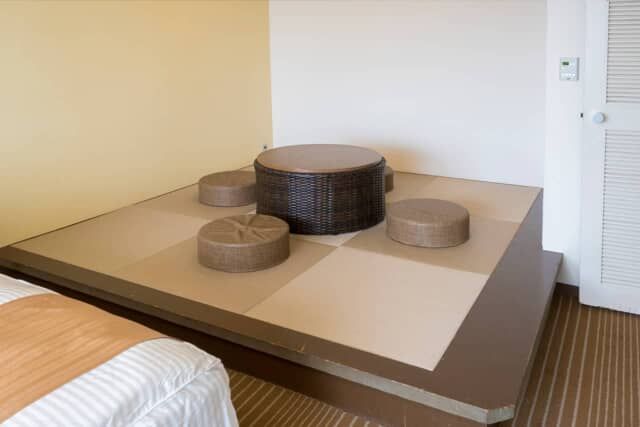 ▲部屋の一画には琉球畳が敷かれた小上がりが設けられています