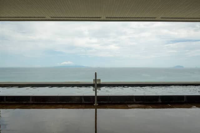 大浴場は日の出時刻に合わせてオープンするので、朝焼けに染まる海を見ながら早朝の絶景温泉を楽しめます。