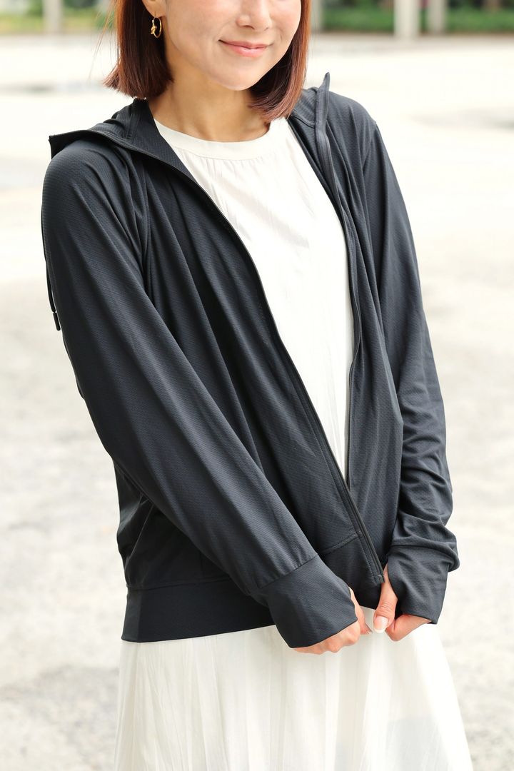 接触冷感付きで着ているほうが涼しい ユニクロの「エアリズム UVカットメッシュパーカ」