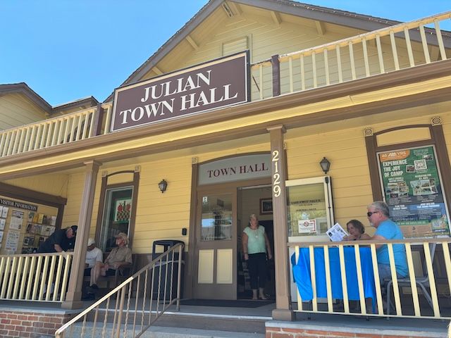 以来、毎年夏の終わりには、町中の農園に真っ赤なリンゴが実り、アップルパイやリンゴ狩りなどで観光客が集まっていきました。ジュリアンはゴールドラッシュで栄えたレトロな町並みを残しつつ、現在もゴーストタウン化することなく活気ある町として存続しています。写真のタウンホールでは、ゴールドラッシュの金鉱跡地を見学するツアーに申し込みができます。