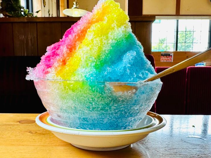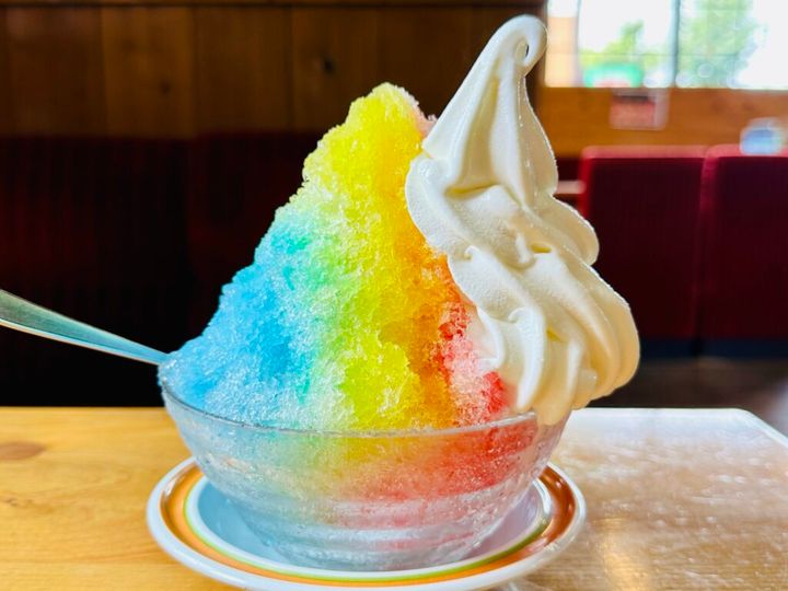 『コメダ珈琲店』のかき氷は夏の風物詩といわれるほど人気メニューのひとつです。今回登場した「かき氷 トロピカル」はカラフルで、いちだんと目を惹きますよね。いちご、レモン、ブルーハワイの3種のシロップでレインボーカラーに彩られています。