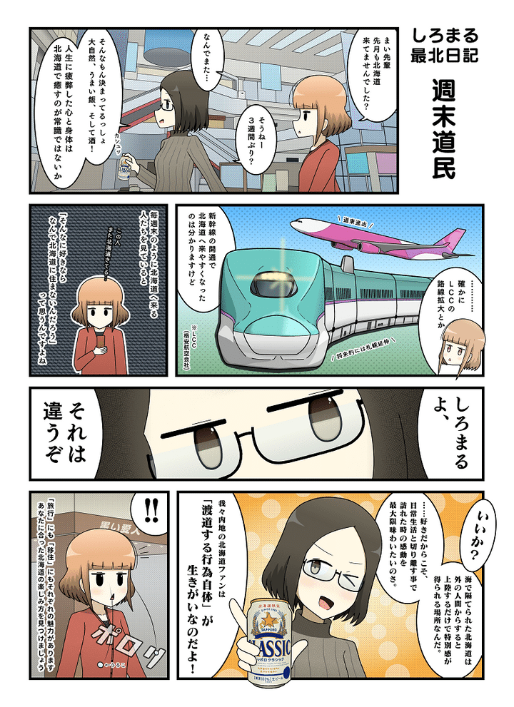 稚内でのゆるっとライフや北海道あるあるなどをまとめた漫画「しろまる最北日記」。