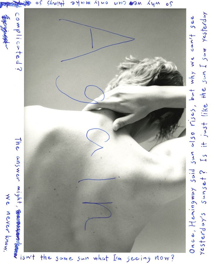 「Blue Diaries」は2021年の暮れ頃、白黒写真の上に万年筆で思いついた文章を書き留めたことから始まったシリーズ。