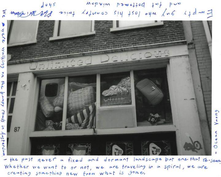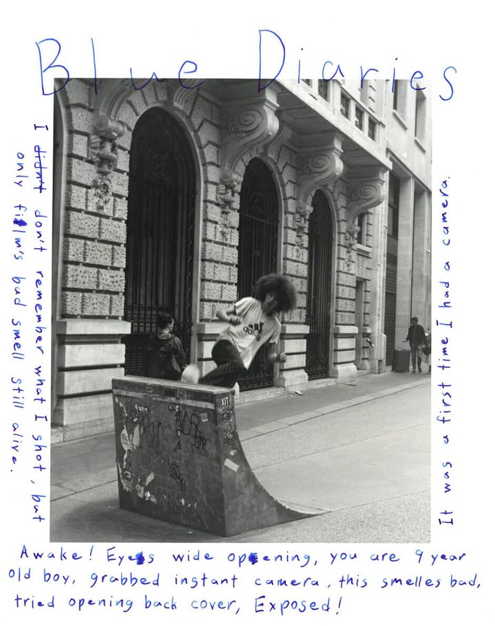 すると写真に写った旅路の風景や知人のポートレートと、その上に綴られた写真とは関係のない、文章の形式も持たない散文とが、それぞれ別のものでありながらも、自身にとって内面的な記録と記憶を綴った日記(Blue Diaries)になっていることに気づいたという。