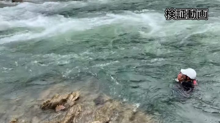 まず前提として、動画内で検証を行うNOPPYさんは川でアクティビティを提供して20年にもなるプロフェッショナル。 その上で高性能のライフジャケットやヘルメットを着用し、安全に配慮した状態で検証を行っています。