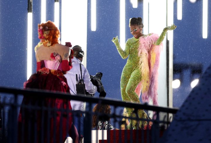 仏版『VOGUE』のカバーを飾ったこともあるアフリカ・マリ出身のフレンチ歌手アヤ・ナカムラが代表曲「ジャジャ」を披露した。着用したのはレディー・ガガと同じく、ディオール(DIOR)のオート・クチュールコレクションだ。