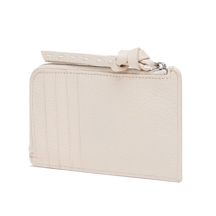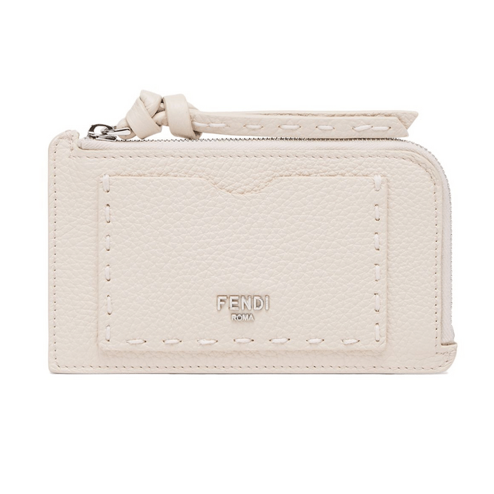 フェンディらしいハンドステッチが特徴のカードケース。白に近い淡いピンクセレリアカラーが上品です。[ヨコ13×タテ8 ×マチ1 cm、カードスロット4、ジップ付きコインポケット1、前面カード入れ1]カードケース¥82,500(すべてフェンディ/)