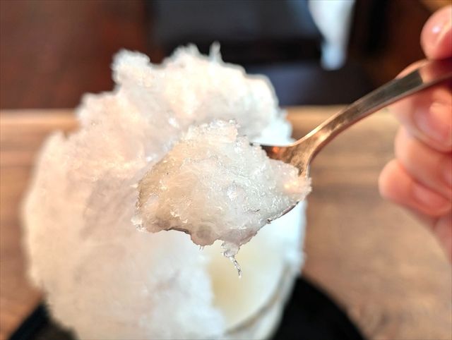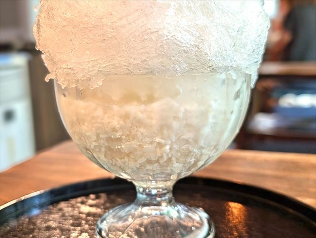 ふわふわの氷の下に、冷やし甘酒がたっぷりと入っています。