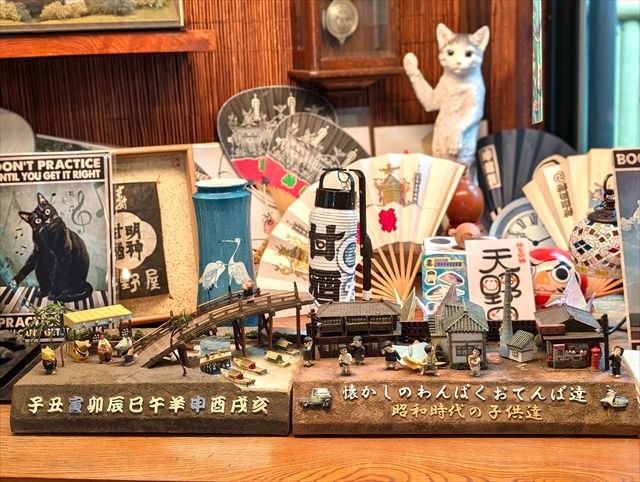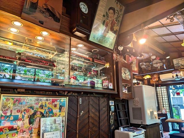 レトロなポスターや模型、照明が雑多に入り混じっている店内は、昭和レトロな空間で、まるでタイムスリップしたかのよう。オレンジ色の照明に、木造の店内、気さくな店員さんが、あたたかな空間を作り上げています。