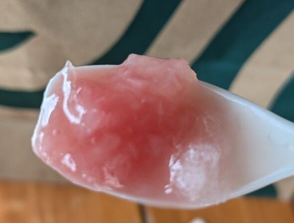ピーチベース・ピーチ果肉・ホイップクリーム・氷といったシンプルなフラペチーノとなってますが、甘味のあるみずみずしいピーチ果汁に濃厚なピーチ果肉が夏にピッタリなので、やはりピーチフレーバーは毎年人気です。