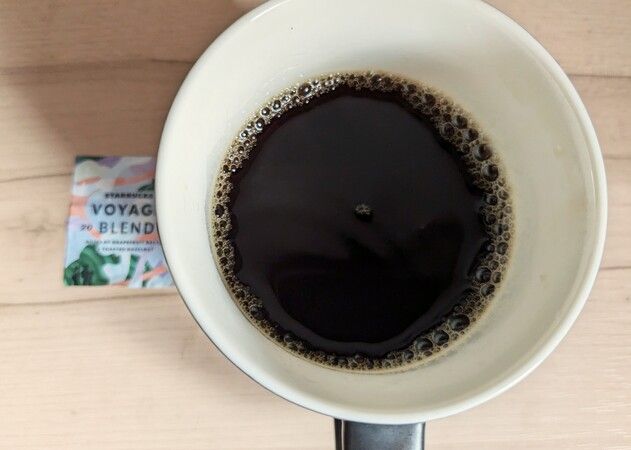 ボヤージュブレンドは、スターバックスの中間の焙煎度合いを示す「ミディアム ロースト」です。ブラジル・ザンビア・その他のコーヒー豆を使用したブレンドコーヒーです。やわからな苦味とはちみつのような甘味、ナッツのような香ばしいバランスのとれた味わいが特長となっています。店舗でお聞きすると、パートナーさんもこの夏おすすめのコーヒー豆だそうで、アイスでもおいしいとのこと。