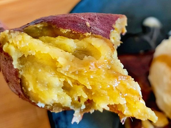 まずは、端っこの何もついていない部分をいただいてみたら、ねっとりしていてびっくりするほど甘い! お芋から出て来る蜜だけで、ここまで甘くなるなんてすごいですね。