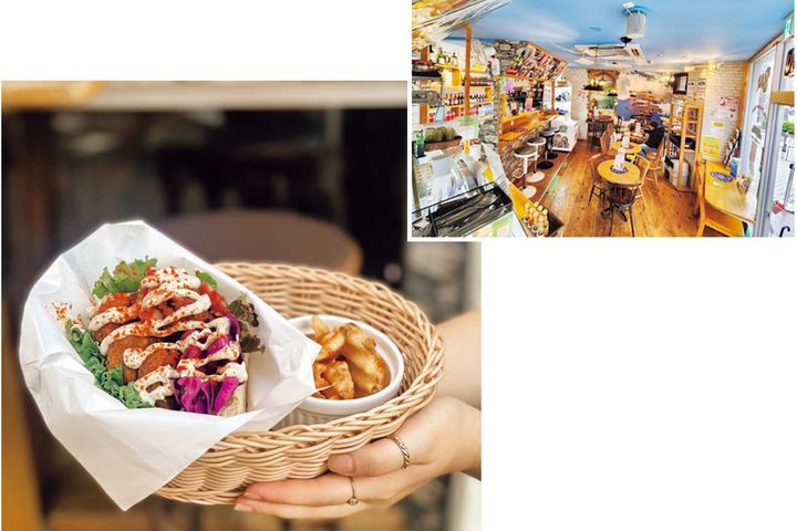 異国ムード溢れるヴィーガン中東料理専門店。ファラフェルサンドほか朝限定でピタパン・サラダ・ドリンクのセットも。