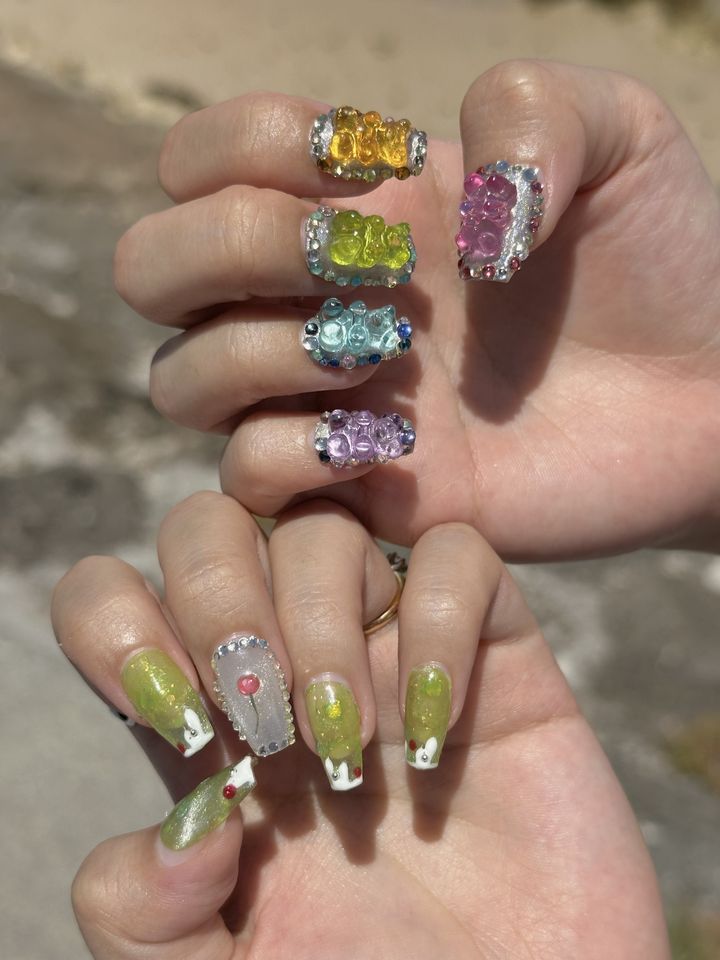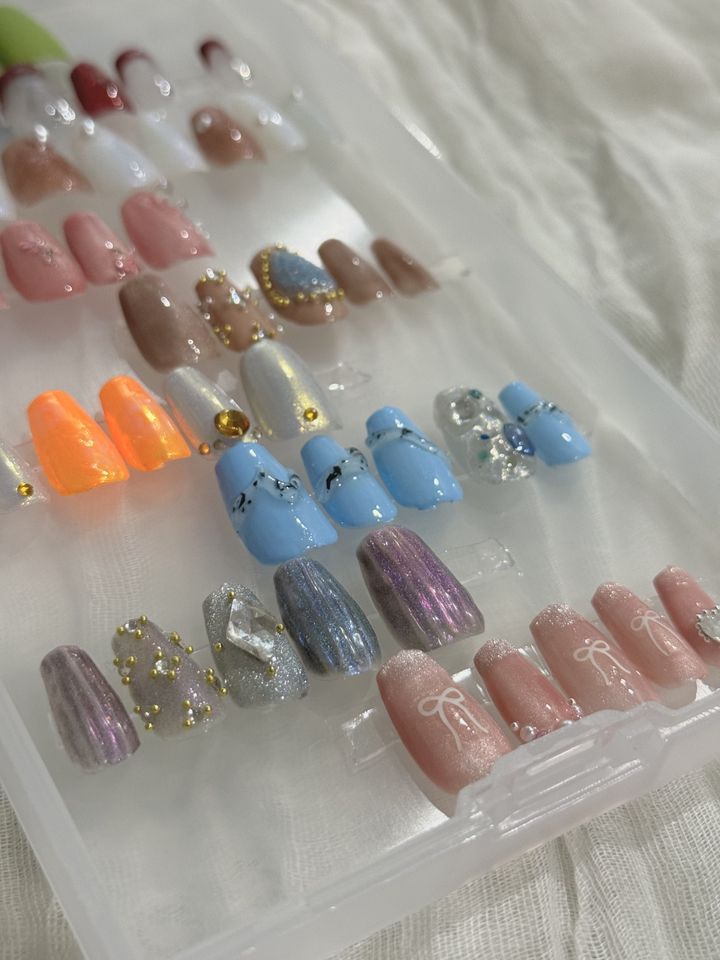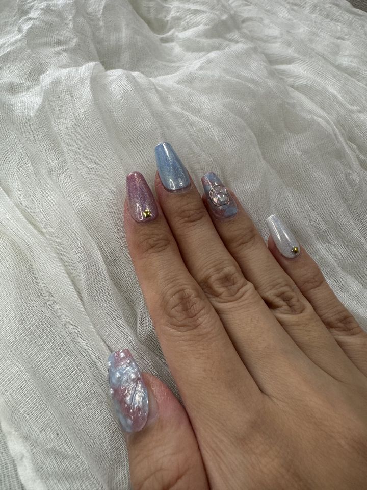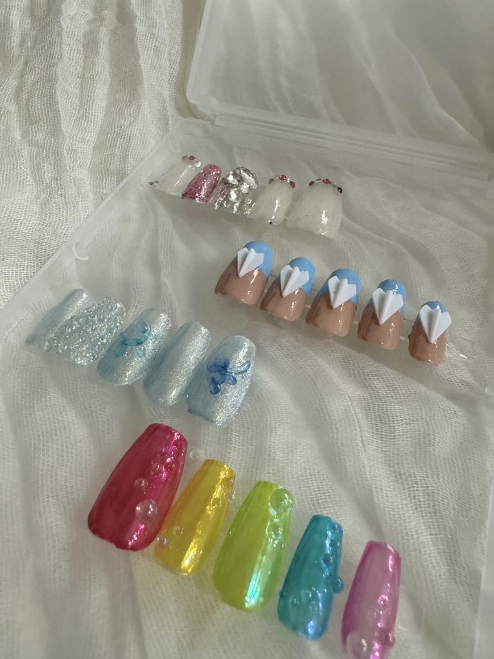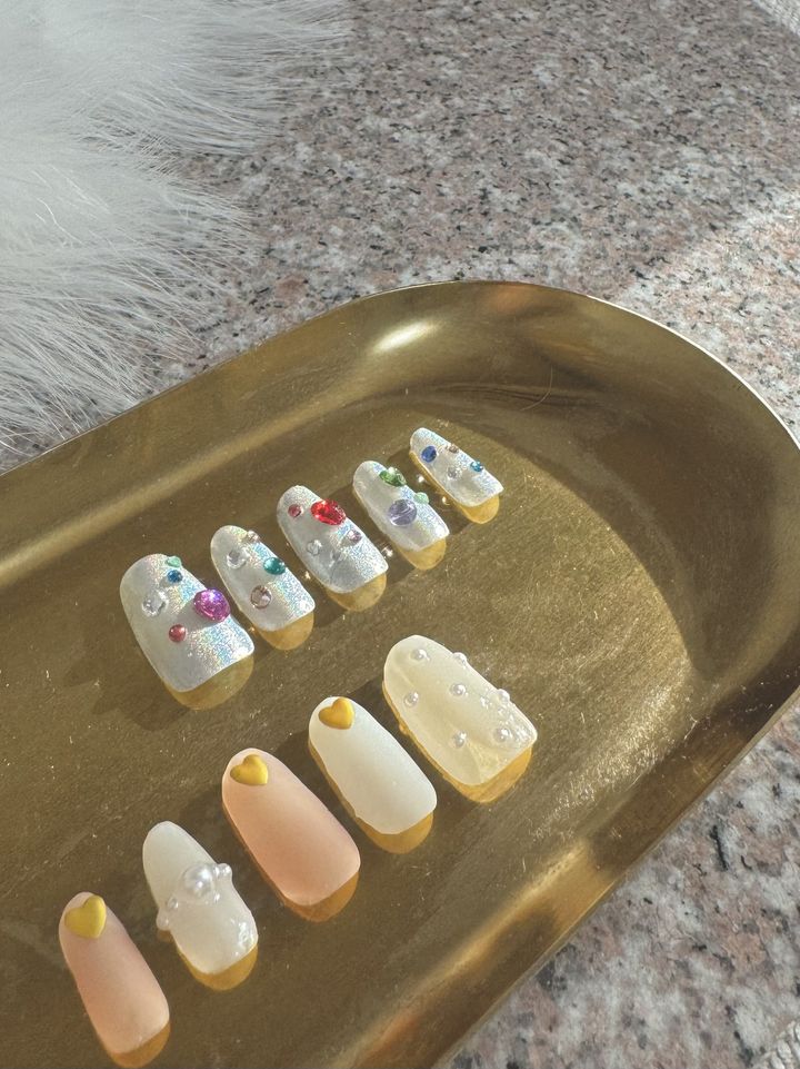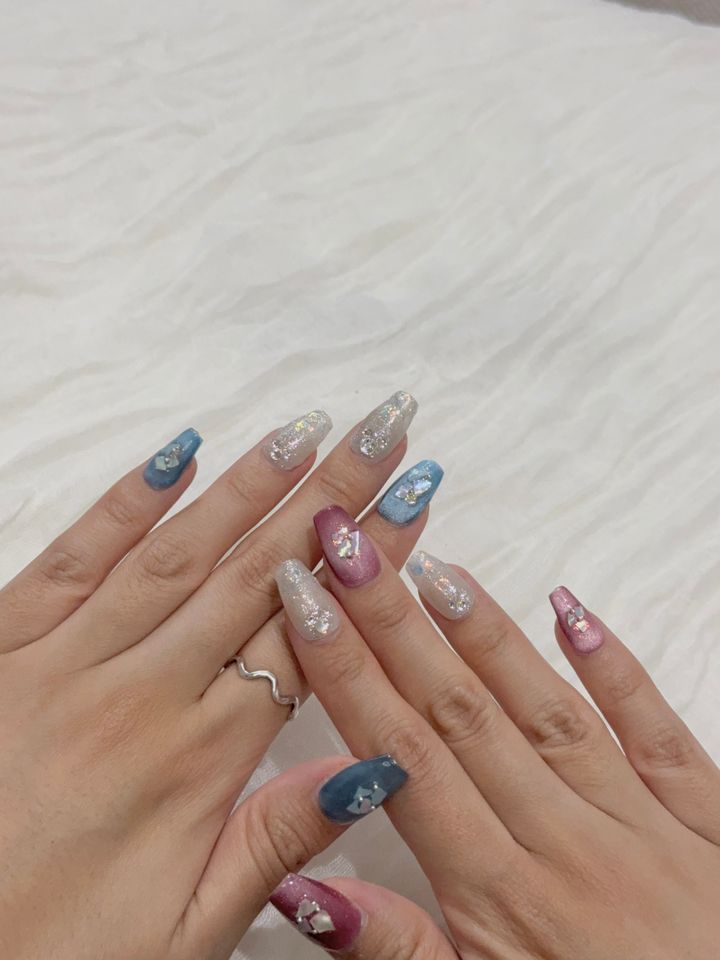 出典:MORE初めてネイルチップに手を出した記念(笑) ユニコーン+ストーンのネイルがしたくてうずうずしてた(上段)
