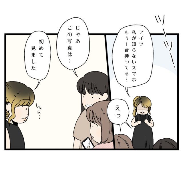 その後、「アイツ・・私が知らないスマホもう1台持ってる・・」とママさん達に話しました。「えっ」驚くママさん達が「じゃあ、この写真は・・」とたずねると「初めて見ました」しゅんとしながら答えるサチさんは、ママさん達に申し訳ないと思いつつ、信也さんが内緒でスマホを持っていたことも知らされず落ち込みました。