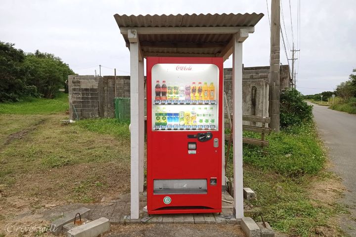 畑に囲まれた道路脇にポツンとたたずむ自動販売機。誰がやったか、Google Mapにも「日本最南端の自動販売機」として登録されています。