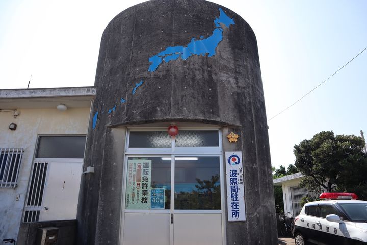 ちなみに、駐在所の壁面にかたどられた青色の日本列島は、よく見ると、波照間島の部分だけ赤くなっているんですよ。