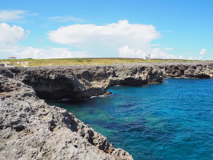 打ち寄せる荒波と紺碧の海が印象的な「高那崎(たかなざき)」。島南東部に位置するこの岬は“日本最南端の岬”として知られています。