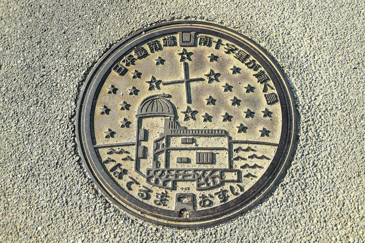 こちらは、波照間島のシンボル、南十字星と星空観測タワーがデザインされたご当地マンホールです。