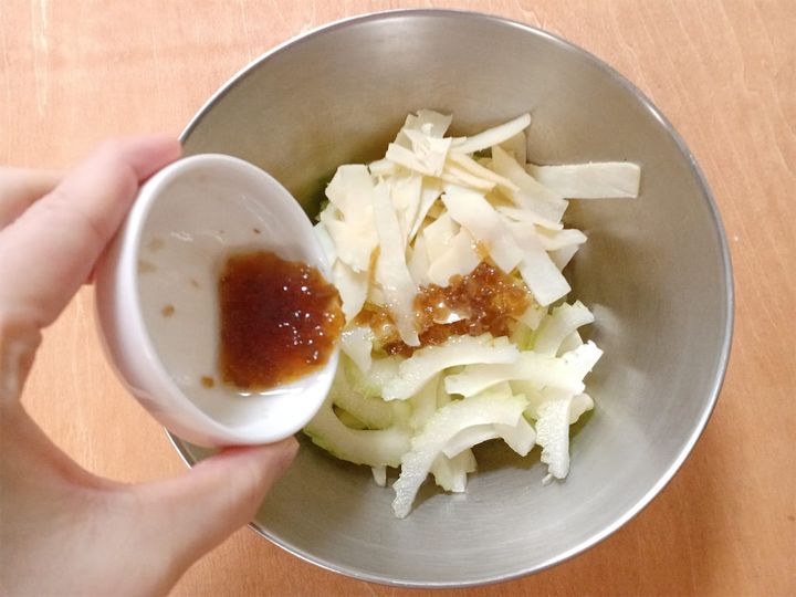 3. いかくん×セロリの新定番!「玉ねぎドレッシング」で和えてみた♪永遠に食べられるオツマミ爆誕♡【農家直伝】
