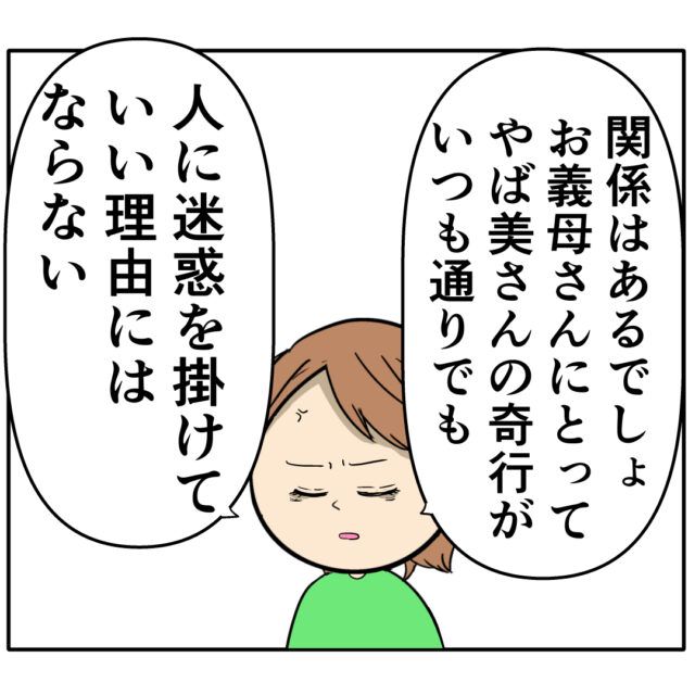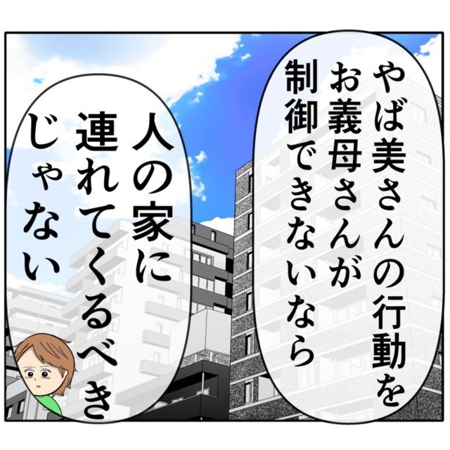 「やば美さんの行動をお義母さんが制御できないなら、人の家に連れてくるべきじゃない」と正論をぶつけます。