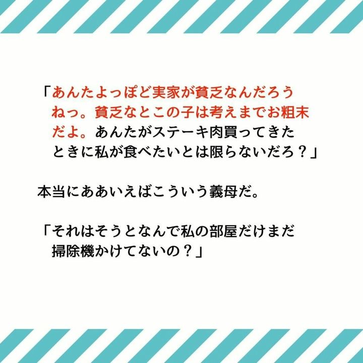 義母は夫が見ていないところで、ヒロミをしつこくいじめます。それでも彼女は、義母に対していつも優しく接していました。ある日、掃除機をかけるために義母の部屋に入るとヒロミが見覚えのないものを発見しました。