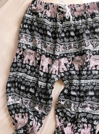 また、こちらは友人がタイ旅行で買ってきてくれたタイパンツ。さすが暑い国のタイ発のパンツというだけあって、履いたほうが涼しい! さらっとした生地で汗をかいても肌に張り付くこともないので、夏の部屋着の定番となりました♪ こちらも足首まであるロング丈なので、涼しいながらも、室内の冷房の寒さを直に浴びないという意味でも夏にぴったりです。ショートパンツやステテコタイプの部屋着だと脚が冷えてしまう、でも涼しく過ごしたいという人にもおすすめです。