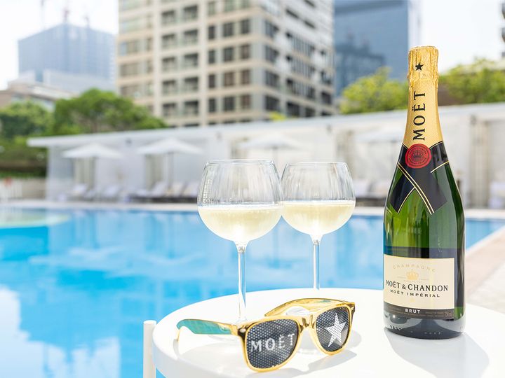 非日常感に浸れる空間で、プール×シャンパンの大人な遊びを満喫してみては?