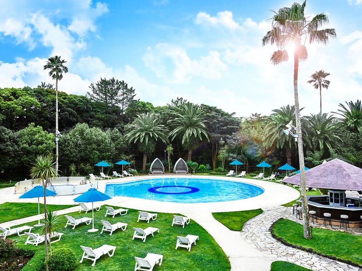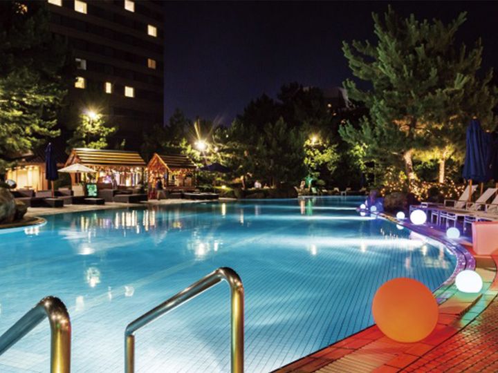 都心から約30分のところに位置する「ホテルニューオータニ幕張」の「Shell Pool」は南国体験を叶えるアウトドアプール。