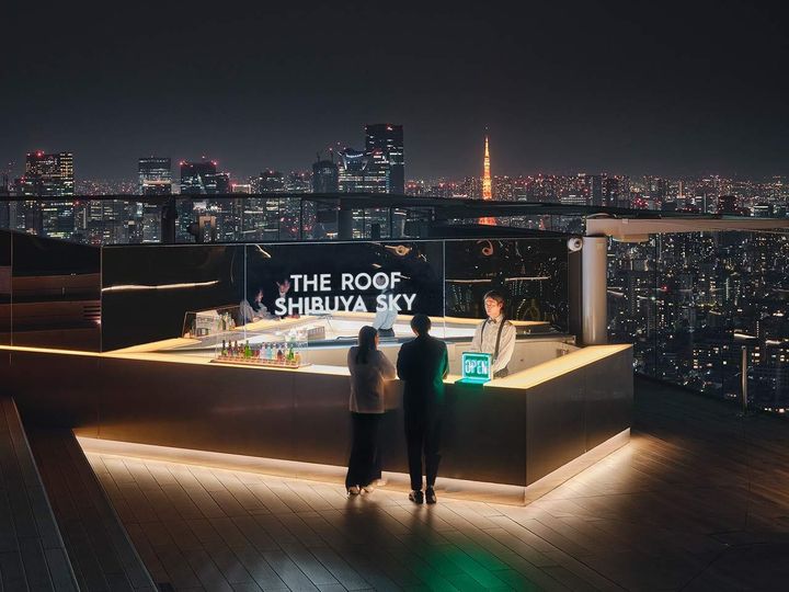 渋谷最高峰の地上229mに位置するルーフトップバー『THE ROOF SHIBUYA SKY』。
