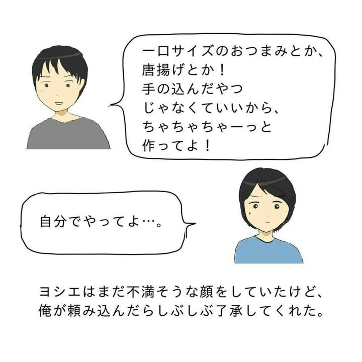 シンジは、唐揚げなどを簡単に作ればいいと提案をしますがもちろん手伝う様子はありません。それどころか、自分の自由な時間を主張し、ヨシエさんに強くあたります。それで言うなら、ヨシエさんはいつ体を回復する時間を作り、いつ自由な時間を楽しめばいいのでしょう。