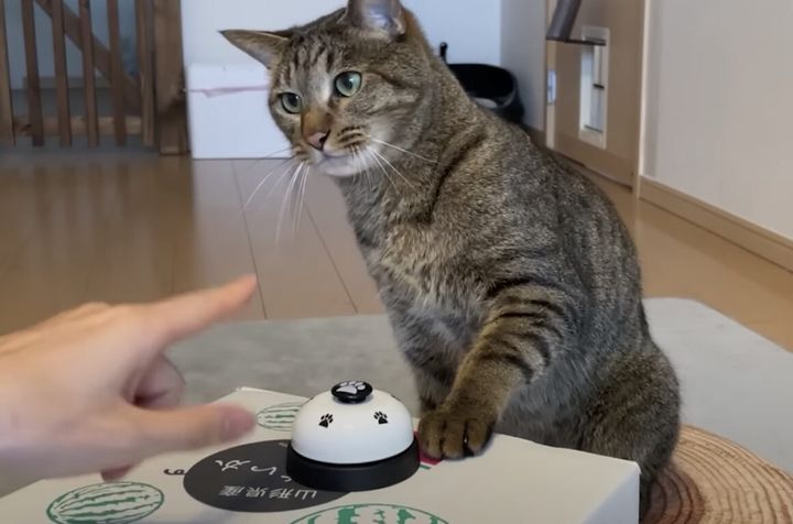 3. 呼び鈴に挑戦中の猫さん、失敗しても可愛かった!
