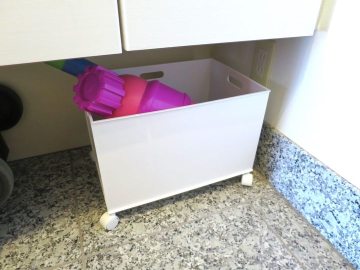 下にスペースが空いているタイプの靴箱なら、その部分も収納スペースとして活用することができます。