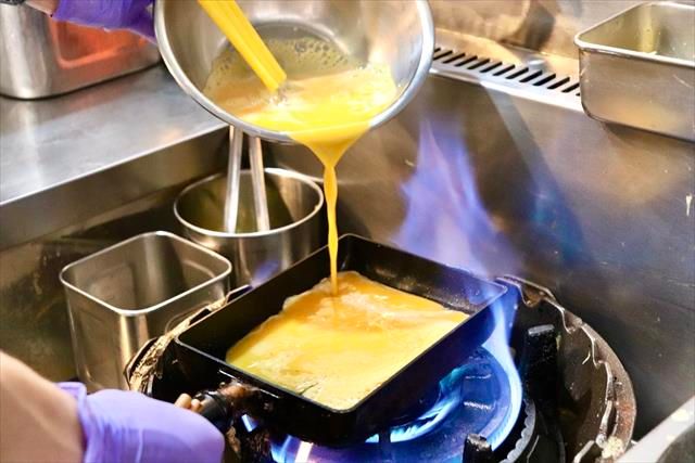 定番ながらも新しい、卵道のだしまき玉子。どのように作られているのか、実際に厨房を見せていただきました。