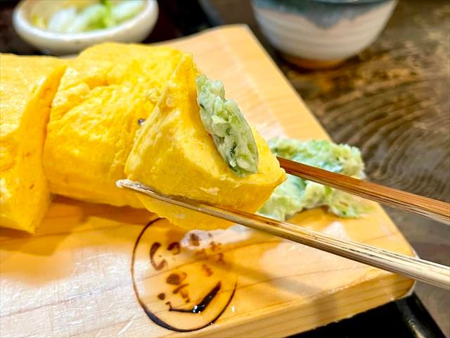 玉子焼きにわさび漬けを合わせるのは初めてでしたが、わさびの清涼感ある辛みと、濃厚な卵の相性は抜群! わさびが苦手でなければ、ぜひおすすめしたい組み合わせです。