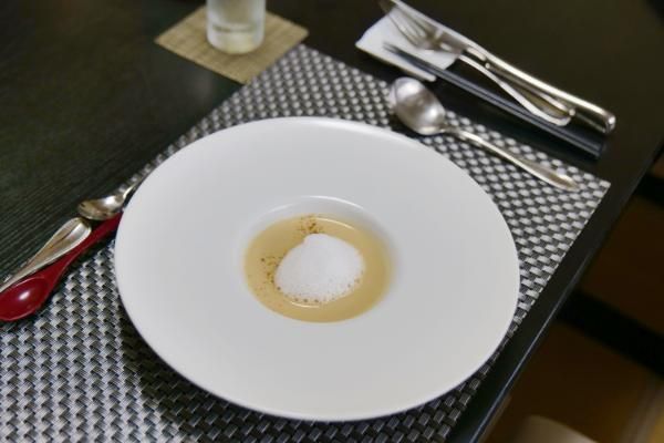 お次に運ばれてきたのは、Amuse2。 こちらは先ほどは違い、温かい器での提供です。
