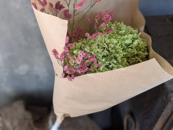 アナベルと一緒に選んだのはピンク色のスターチス。