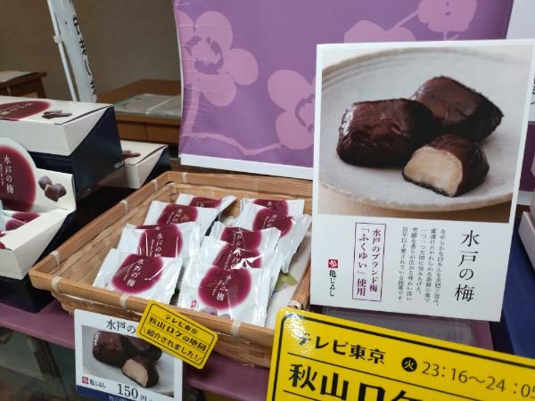 なめらかな白あんが赤しそに包まれた銘菓「水戸の梅」や、
