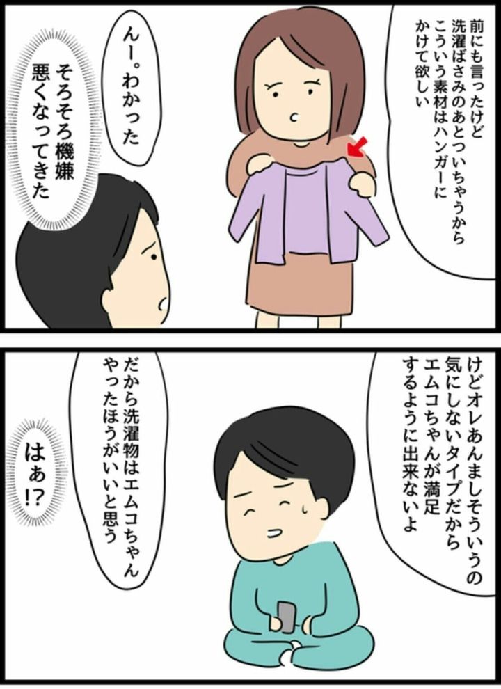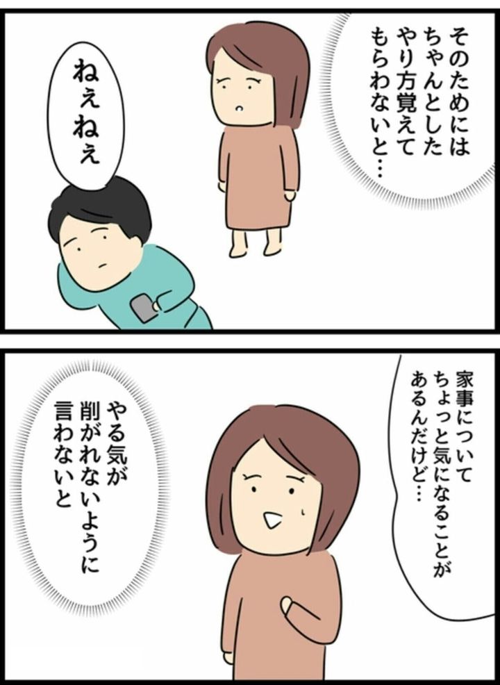 家事の中には「名もなき家事」というものも存在し、全てをしっかりと分担はできないかもしれません。また、やり方の統一と押し付けは違いますよね。エムコさんとエスオくんのやり取りに既視感を覚えた人もいるかもしれません…。