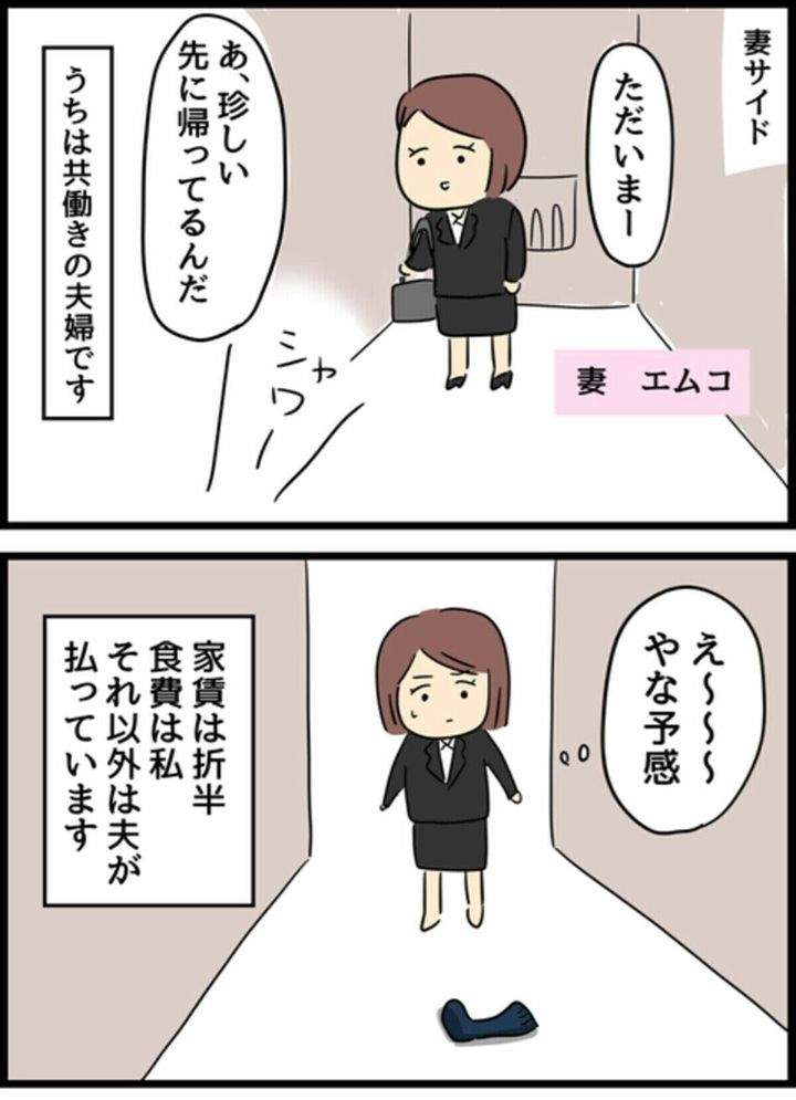 共働きの2人は、お金のやりくりはしっかり決め事をして折半をしていましたが。家事はやれるほうがやる、という少し曖昧なスタンス。エムコさんとエスオくんはどんなすれ違いがあるのでしょうか。