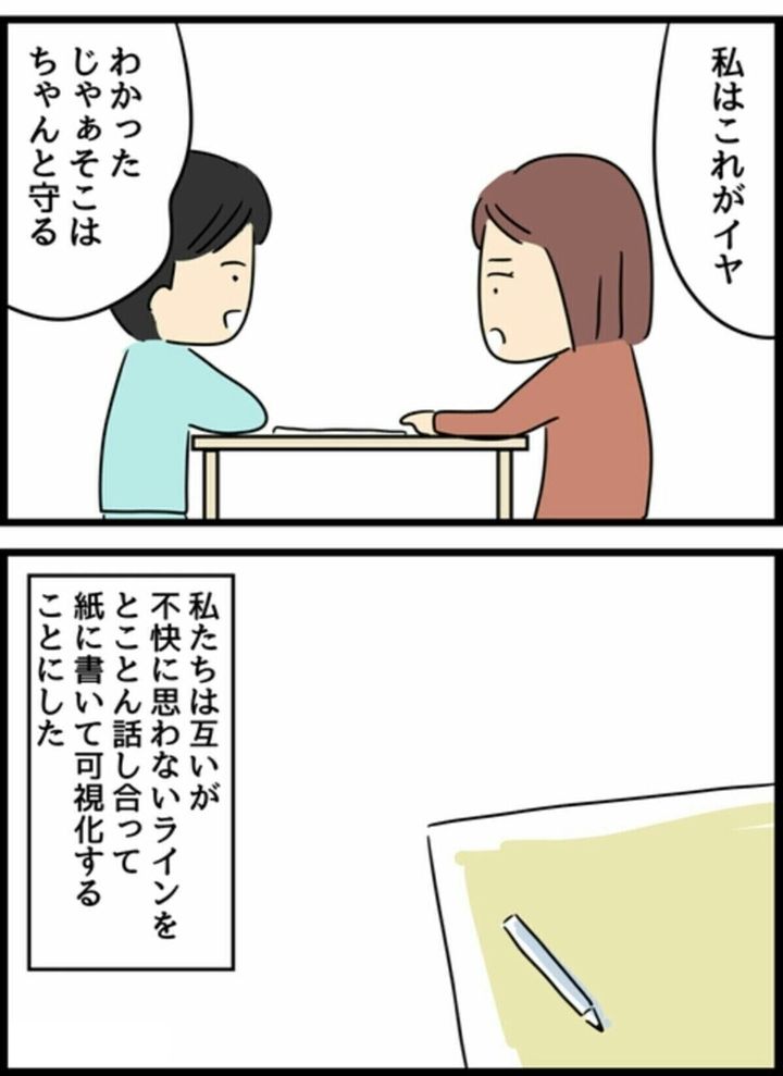 自分の気持ちを整理し、相手の気持ちを知るとてもよい機会です。特に、2人のように紙に書くと、あとで見返しやすくなり、その後の衝突が減るかもしれません。
