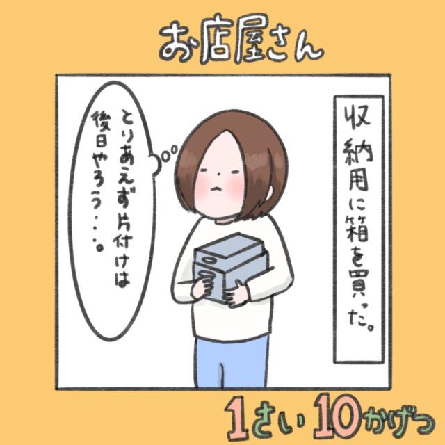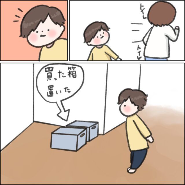 2歳の男の子みぃくんのお母ちゃんであるねむりひつじさんから、お店屋さんのお話です。ねむりひつじさんが収納用に買った箱を置いてその場を離れたほんの少しの間に、みぃくんは何かを閃いたようですよ?