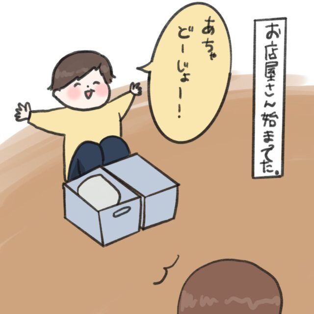 子どもの想像力には本当に驚かされますよね!ちゃんと箱の中に物を入れてお店屋さんごっこをするみぃくん、本格的ですね!